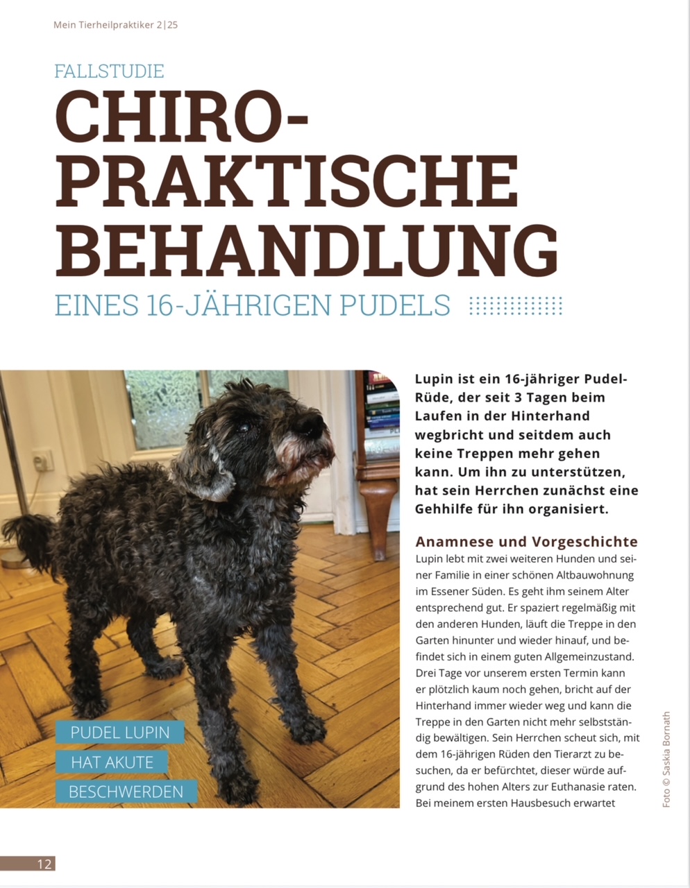 Mein Artikel zur chiropraktischen Behandlung eines Hundes, erschienen in der Fachzeitschrift „mein Tierheilpraktiker“ Ausg. 2/2025: