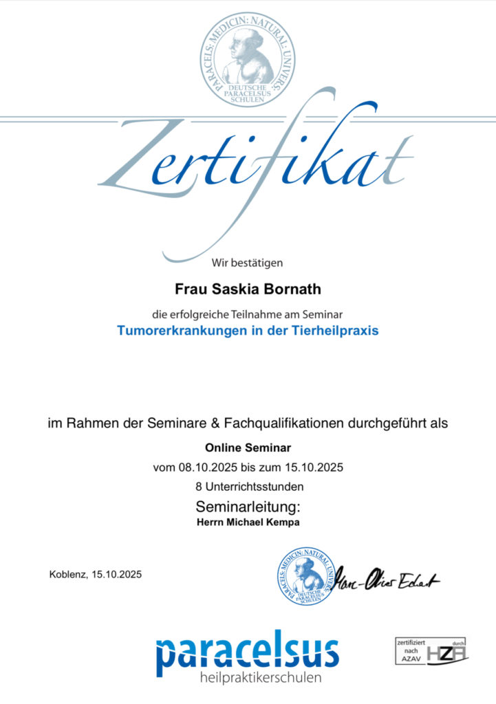 Darüber hinaus können wir unseren Liebling naturheilkundlich unterstützen, sei es begleitend zur evidenzbasierten Medizin (Operation, Chemotherapie & Bestrahlung) oder Palliativ – also unterstützend und begleitend bis zum Regenbogen.